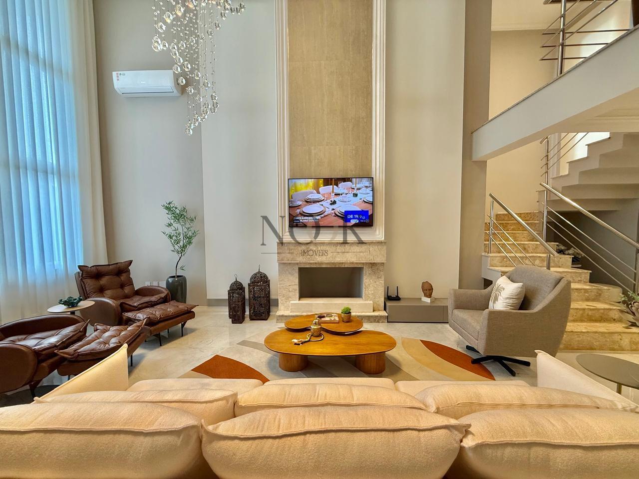 - Living com pé direito duplo: Sala de estar e jantar integradas, com lareira e iluminação em LED.