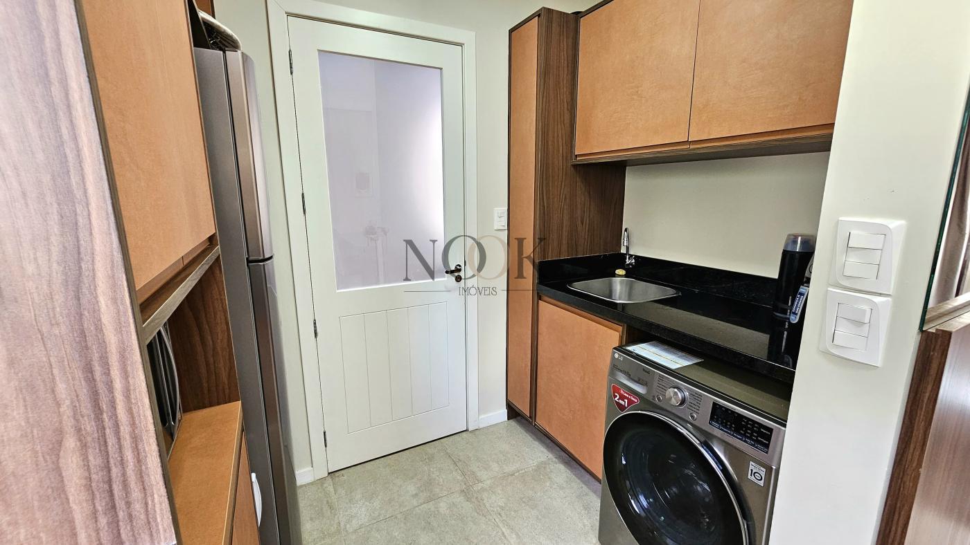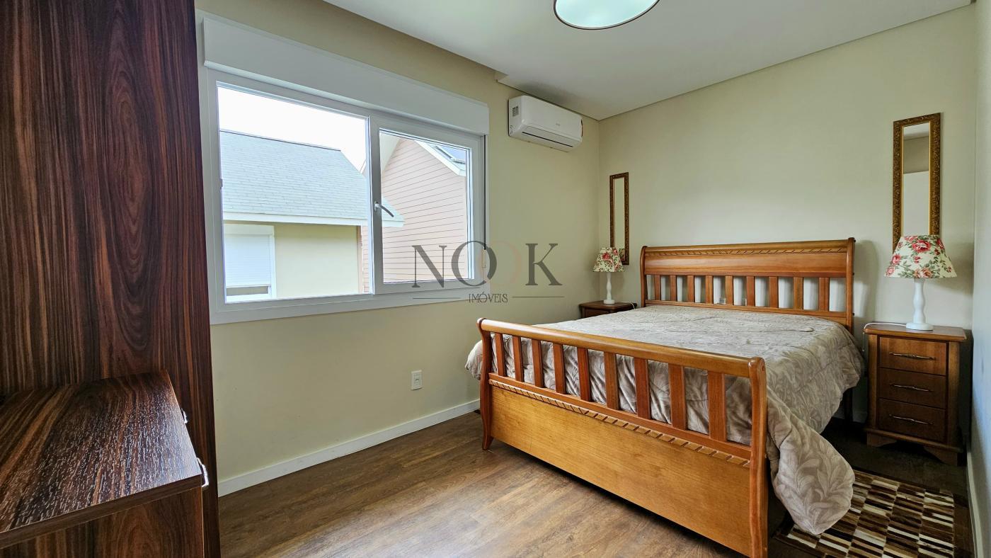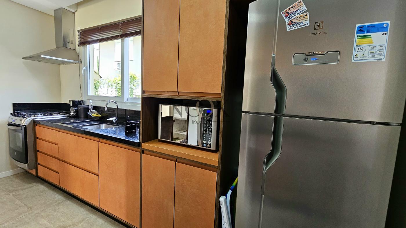 Conta com dois dormitórios. Banho social. Sala de estar e jantar integradas. Cozinha e área de serviços. Pátio privativo, espaço gourmet com churrasqueira. Lavabo. Vaga de garagem. Residência mobiliada. Condomínio possui portaria com segurança 24 horas. As áreas de uso comum são otimizadas, com salão de festas e playground.