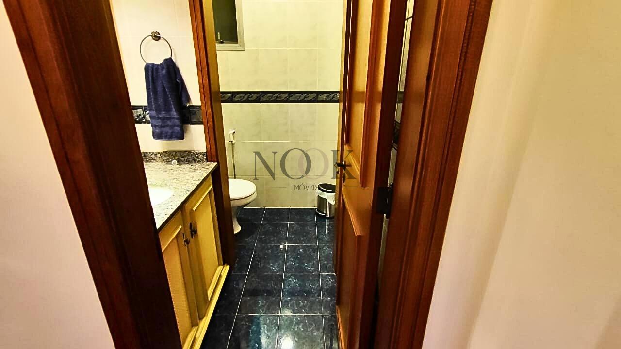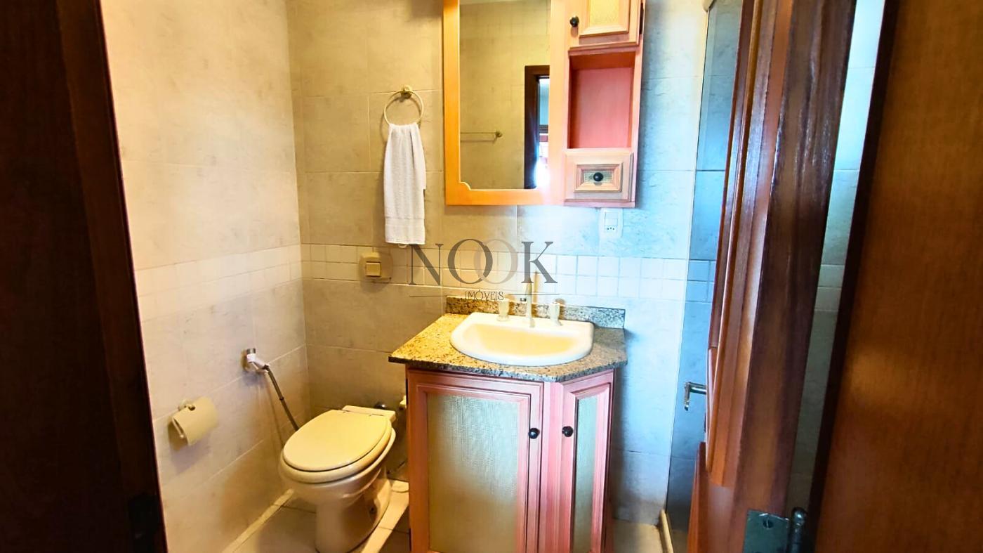 O apartamento conta com dois dormitórios, sendo os dois suítes, quatro banheiros, sendo um lavabo, área de serviço, lareira, sala de jantar e estar integradas, uma belíssima lareira, lavanderia e garagem para 2 carros.