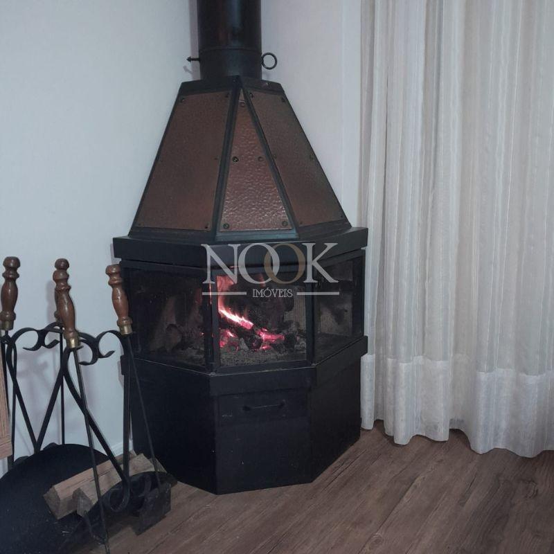 - Ambientes aconchegantes e bem distribuídos: sala de estar com lareira, sala de jantar integrada e cozinha planejada.