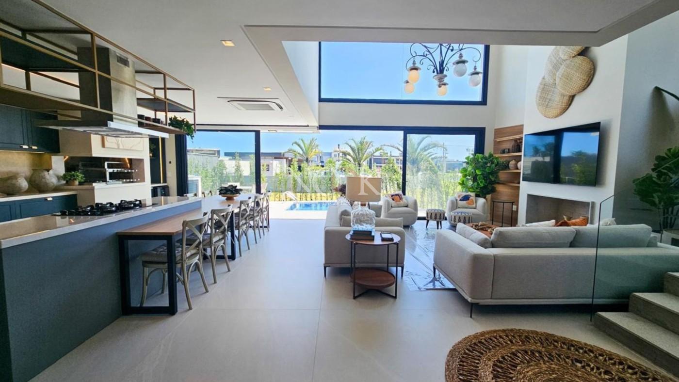 Imagine viver em uma residência de alto padrão em Xangri-lá que une elegância e conforto em cada detalhe. Com área privativa de 261 m², esta casa mobiliada impressiona logo na entrada, onde o forro de gesso e o porcelanato de alto brilho realçam o clima sofisticado dos ambientes. São cinco dormitórios, todos suítes, além de um lavabo e seis banheiros no total, garantindo privacidade e comodidade para toda a família. Dois amplos living rooms um para estar e outro para jantar convidam a momentos memoráveis ao lado da lareira, enquanto o ar-condicionado promove refrescância nos dias mais quentes.