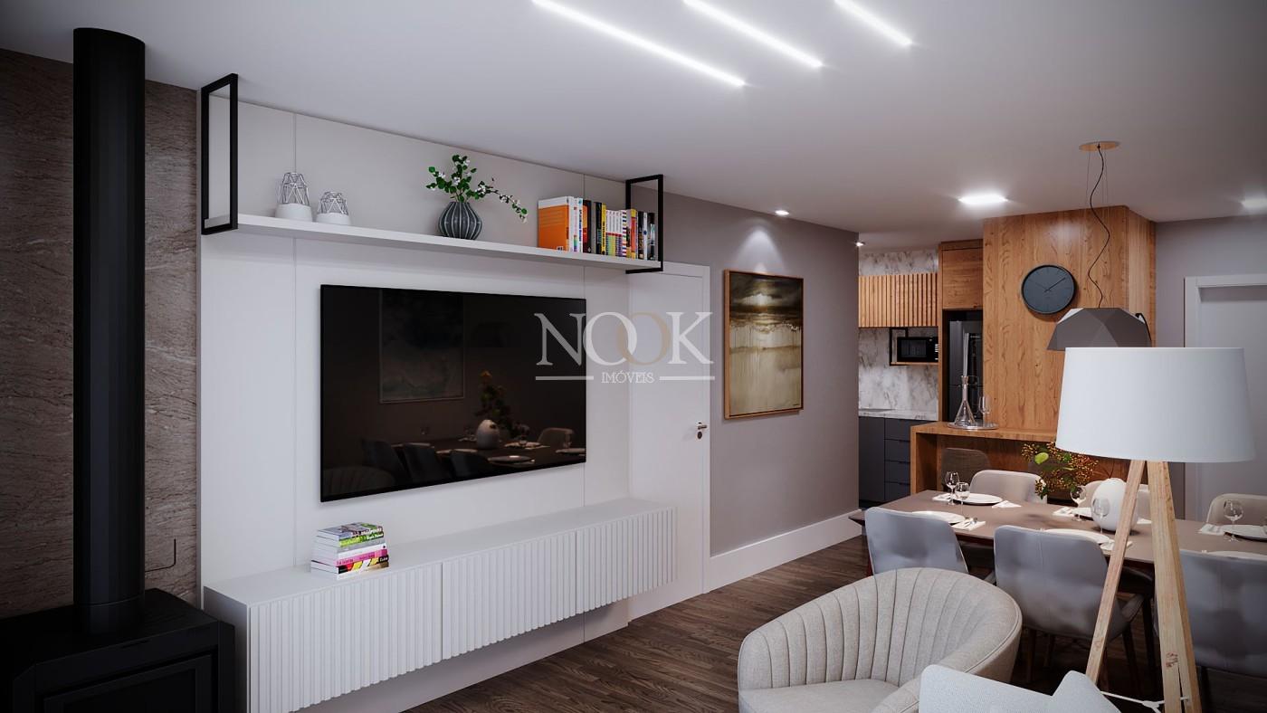 - Acabamentos de alto padrão: piso vinílico, forro de gesso e esperas para calefator, lareira e ar-condicionado split.